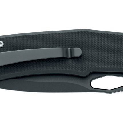 Drška je izrađena od crne G10 kompozitne ploče, sa ojačanim linerima za izdržljivost i dobar grip. Nož dolazi sa čvrstim metalnim džepnim klipom, što omogućava udobno nošenje (tip-down) kada je sklopljen. BF-114 je idealan izbor za one koji žele pouzdan, praktičan i kompakatan taktički nož za svakodnevnu upotrebu.