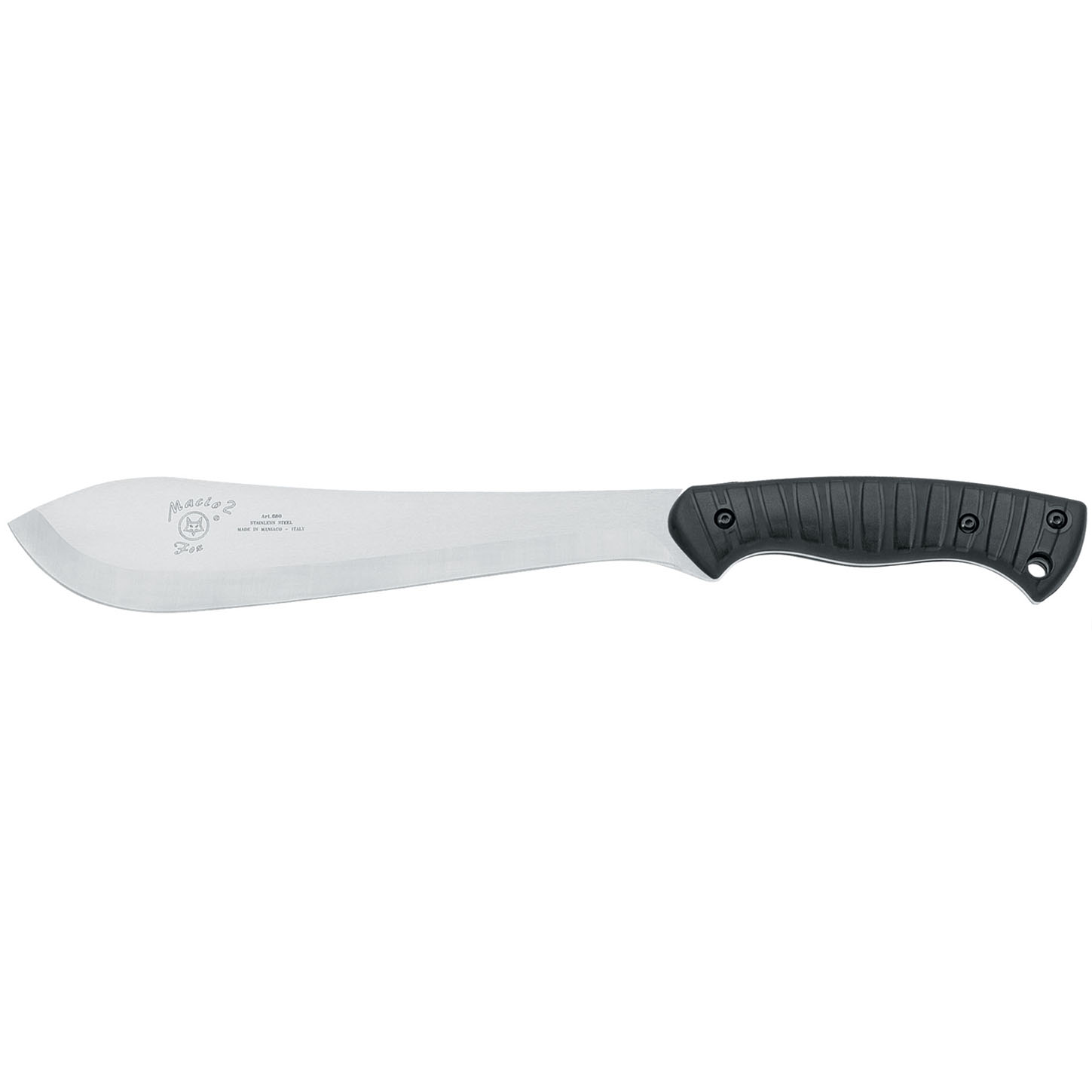 Fox Macho 2 (model 680) je robusna mačeta namenjena zahtevnim korisnicima koji traže pouzdan alat za prirodu, seču vegetacije ili taktičku primenu. Napravljena u Italiji, kombinuje klasičan dizajn sa modernim materijalima, pružajući savršen balans između snage, težine i ergonomije.