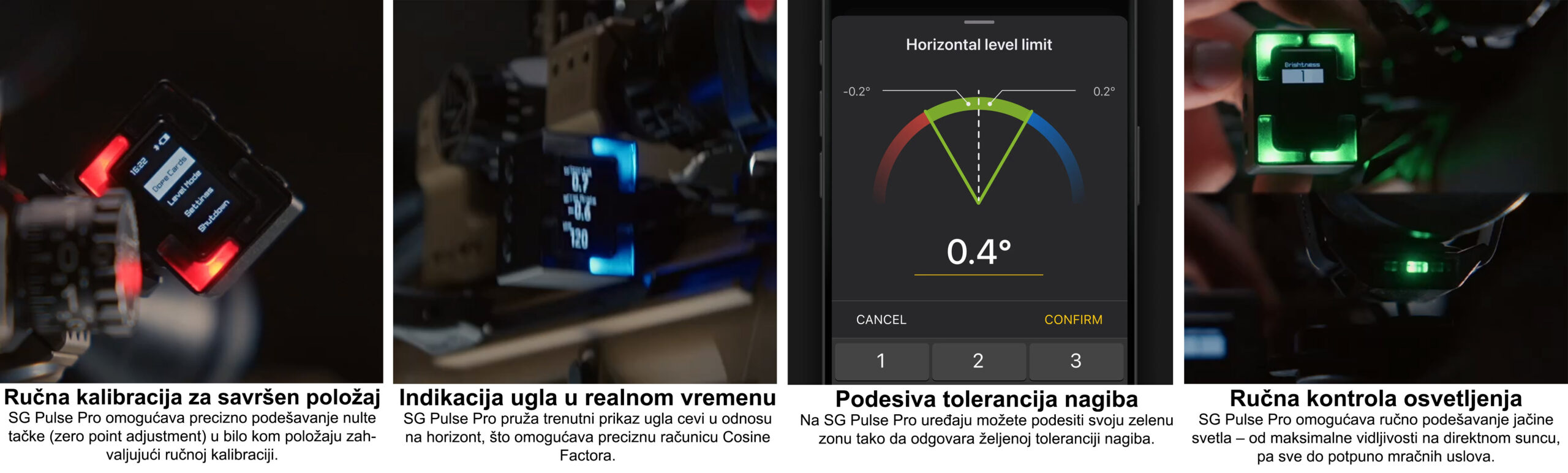 Uređaj se nalazi odmah pored nišana, pa možete pratiti nivo u perifernom vidu bez ikakvog izlaska iz optike, dok vrhunski senzori pružaju trenutno očitavanje mnogo brže i preciznije od klasičnih „bubble“ libela.